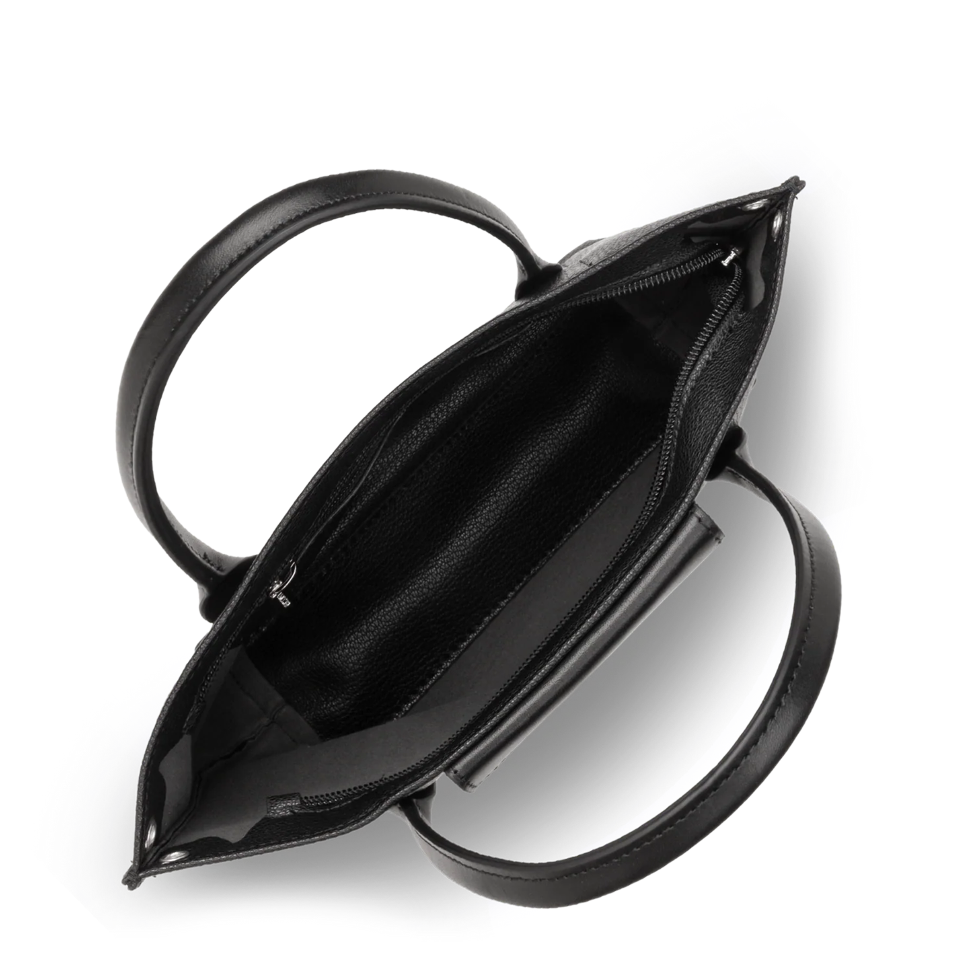 - This mini bag is crafted from polyvinyl chloride with split cowhide leather trim. It features a zippered interior pocket and a front card slot. It can be carried by hand, over the shoulder, or crossbody.