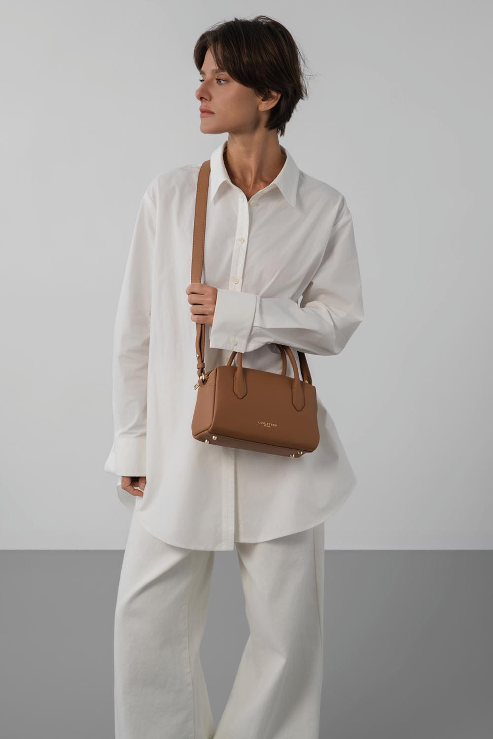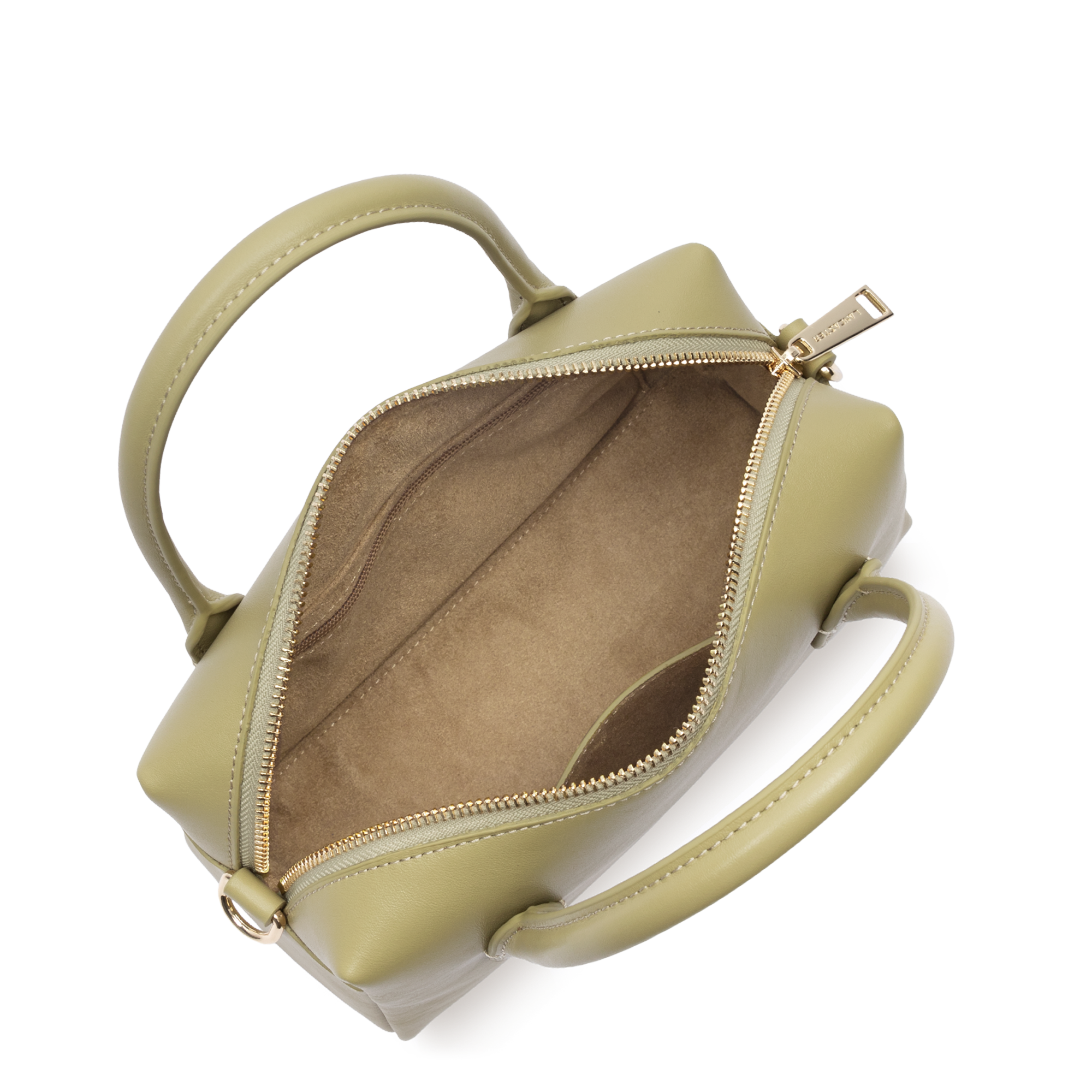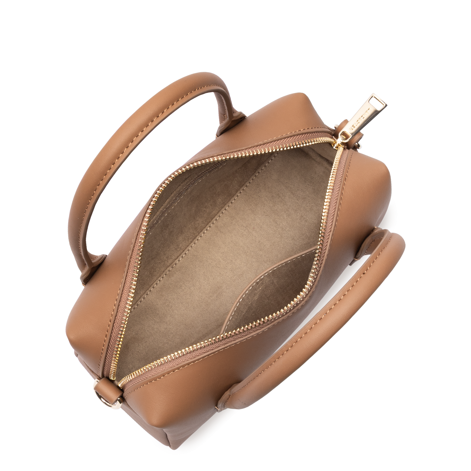 This handbag is crafted from smooth cowhide leather. It features a zipped inner pocket and a plain inner pocket. It closes with a zip fastening. It can be worn crossbody, on the shoulder, or carried by hand