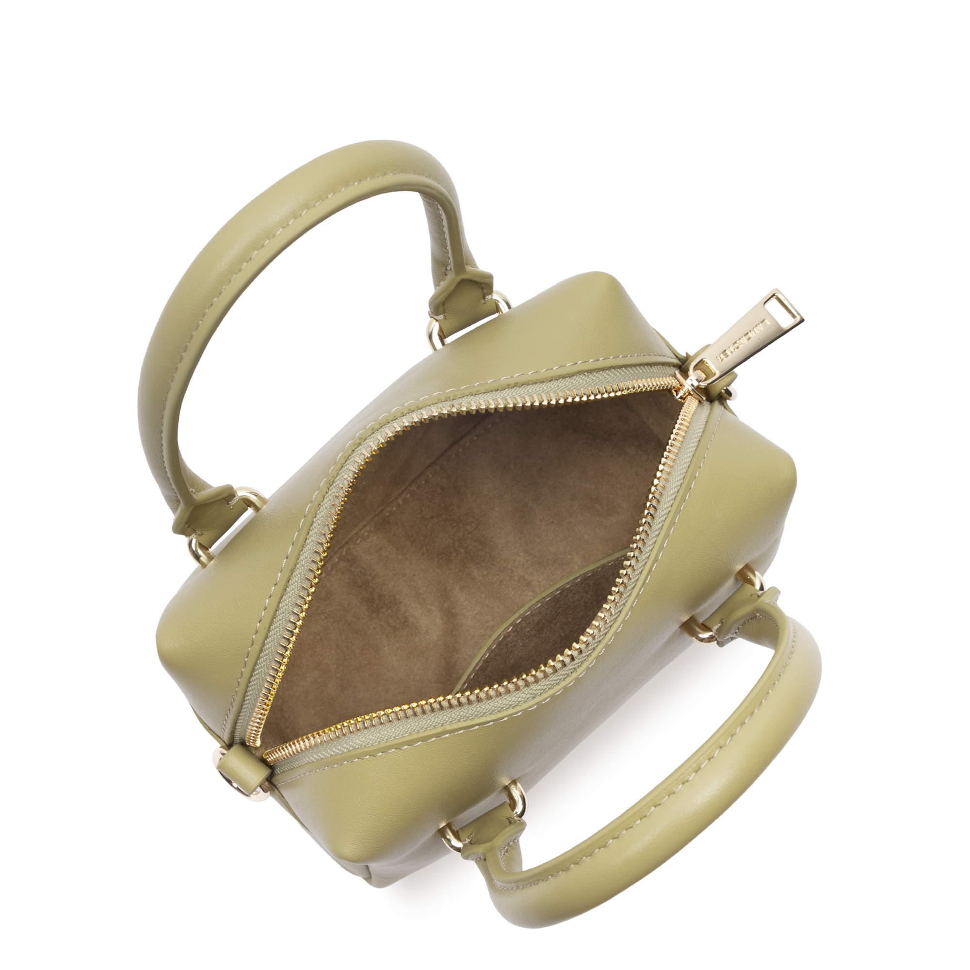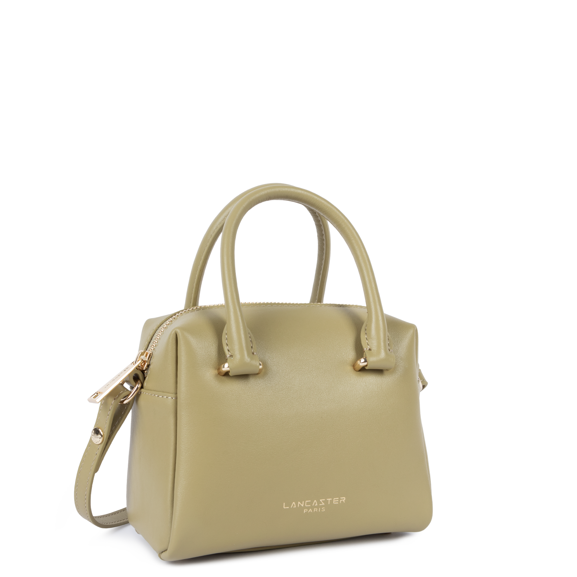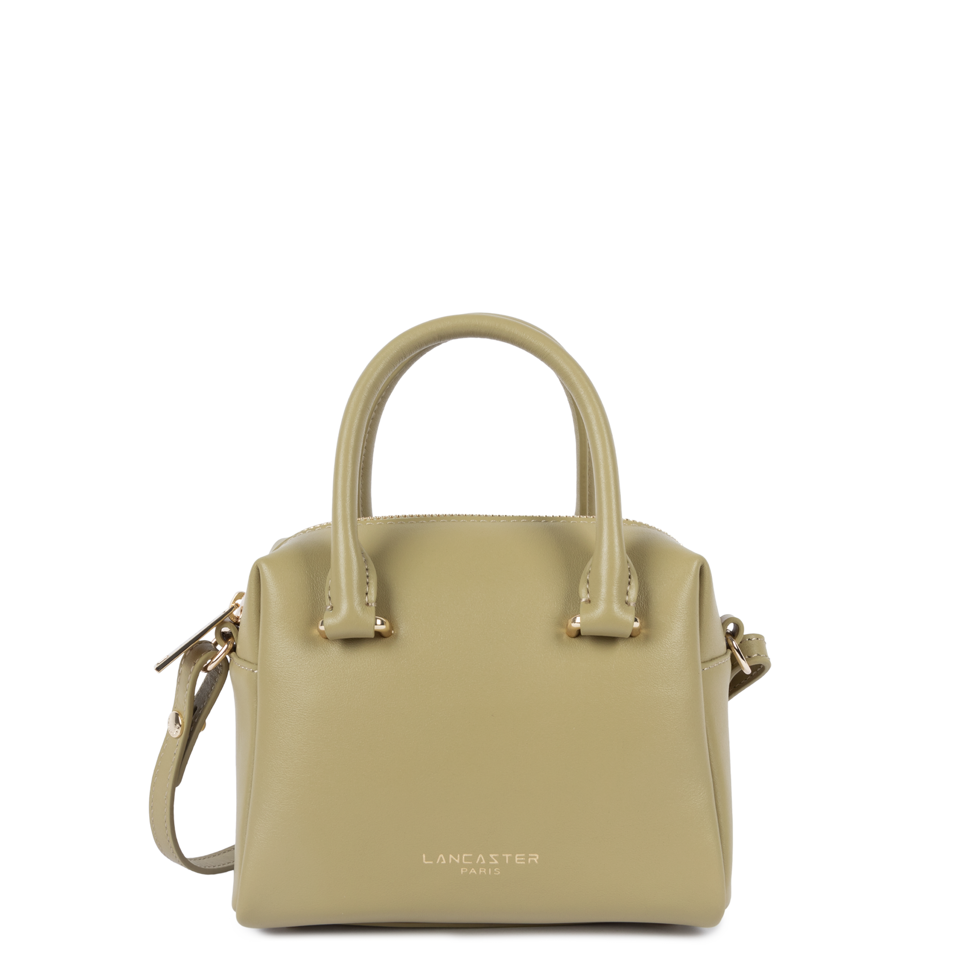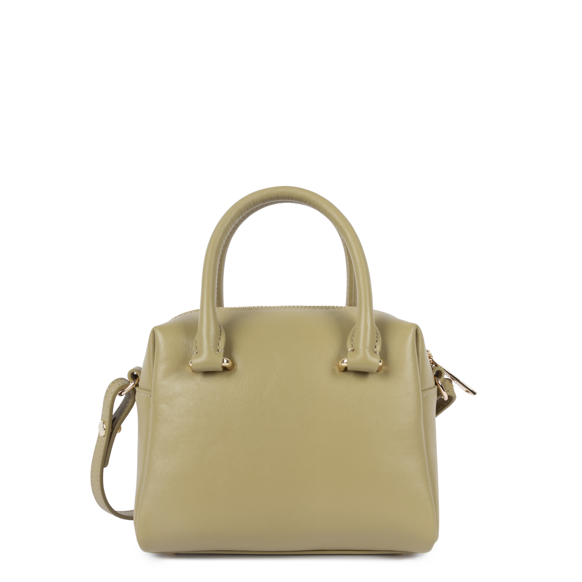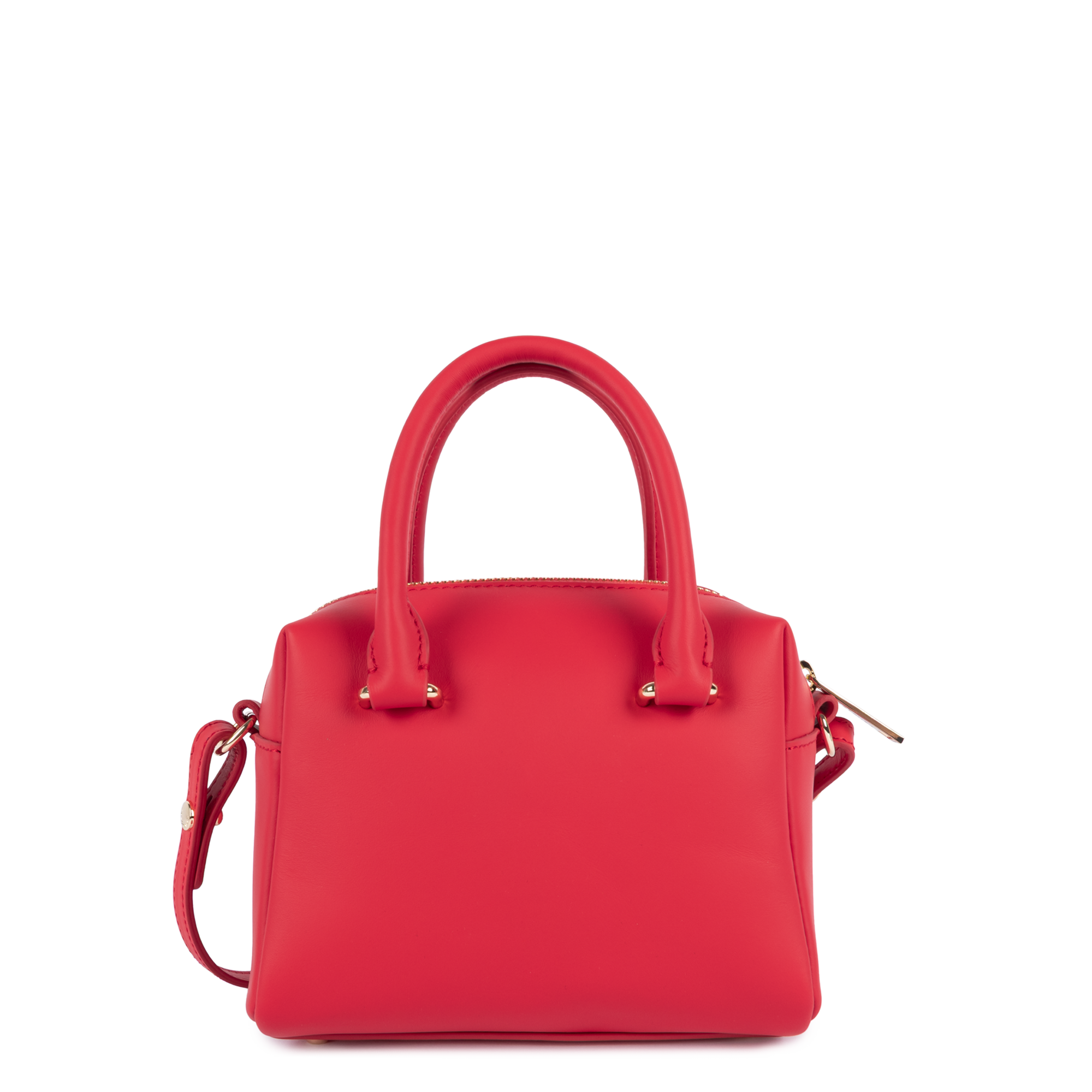 This mini handbag is crafted from smooth cowhide leather. It features a zipped inner pocket and a plain inner pocket. It closes with a zip fastening. It can be worn crossbody, on the shoulder, or carried by hand