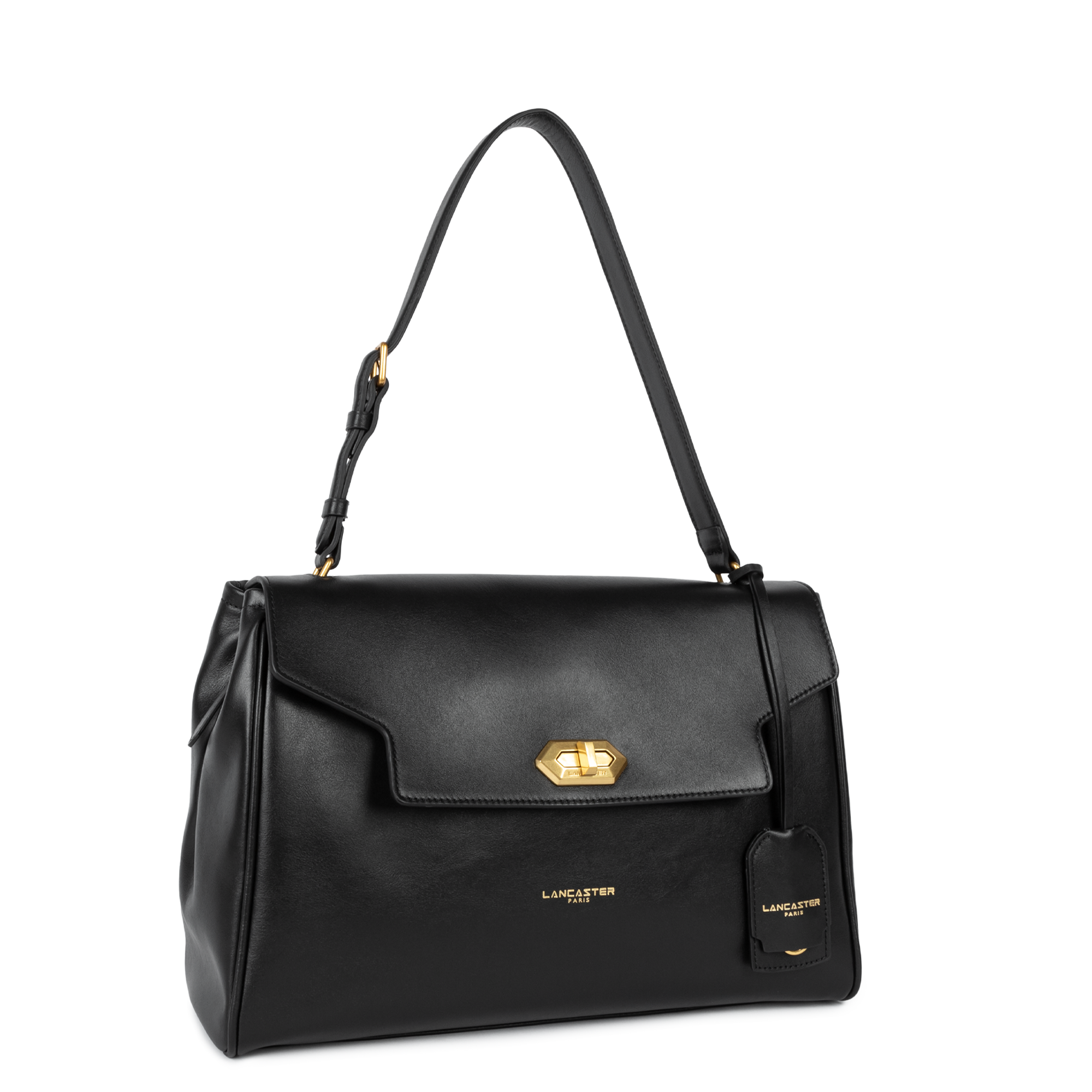 - This large satchel bag is crafted from smooth cowhide leather. It features a zippered exterior pocket, a magnetic exterior pocket, a removable key holder, a double interior pocket, and a zippered interior pocket. It is carried over the shoulder.